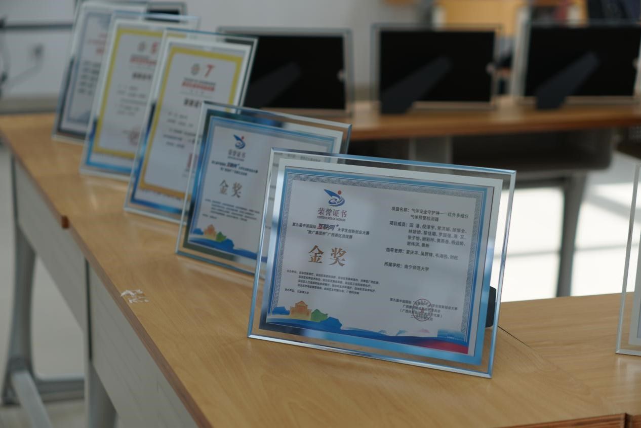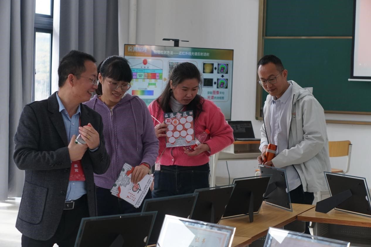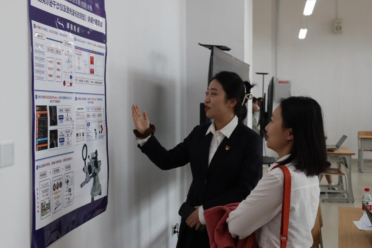 过往写意,时光重合。展览厅里承载着历代物电学子的荣光,凝视那一张张肯定着物电人拼搏精神的获奖证书,老员工竞赛成果路演展示中,物电公司讲解员向员工展示了迈克尔逊干涉仪及激光波长测定、一键识甜-便携式水果成熟度预测仪等七项创新大赛项目内容,以及多类创新大赛奖项。其中,员工颇有兴致地探讨第九届全国老员工物理实验竞赛一等奖《用转动惯量仪测量刚体的转动惯量》。员工向讲解员提出问题,肯定其成果以及物电公司育人立院、科研强院的发展战略,并向公司优秀学子发出邀请。老员工竞赛成果路演展厅为物电学子提供了一个向员工展示和交流的平台,创造了就业机会,同时也鼓励在校学子不断奋斗,积极参与各类比赛。