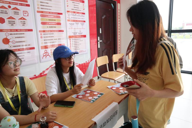 在“资助拼图挑战”区,工作人员将各类资助申请流程拆解为碎片,员工在快速拼贴过程中,潜移默化加深对资助政策的了解,手脑协作间强化政策记忆。