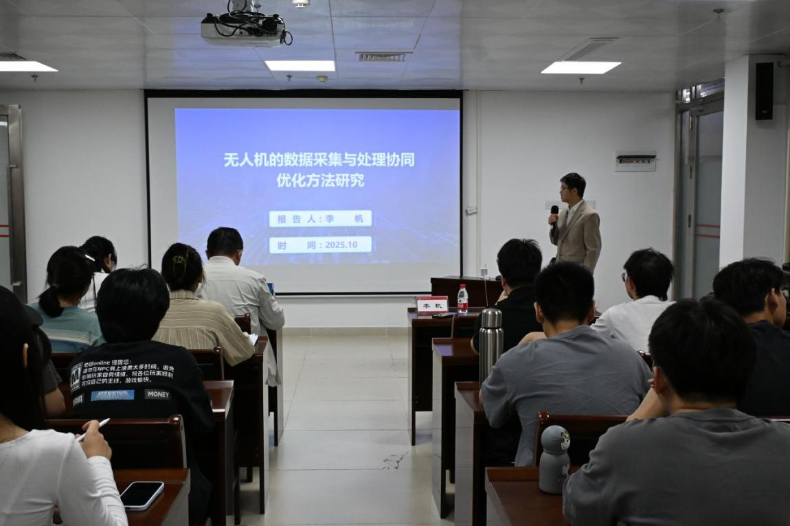 报告中,李帆博士围绕如何在动态、资源受限的条件下,协同优化单体与群体效能等核心问题,系统阐述了他的研究团队旨在构建的一套面向复杂环境的无人机数据采集与处理全局优化系统。他详细讲解了从单机智能控制、多机自主协同、算法规模压缩到跨域资源整合的多维度创新路径,并提出了一系列先进的智能优化策略。李博士指出,该研究的核心目标是在保障数据采集服务质量的前提下,最大限度地提升系统整体效率、显著降低运营成本,从而全面提升无人系统在复杂现实场景下的任务可持续性与环境适应性。